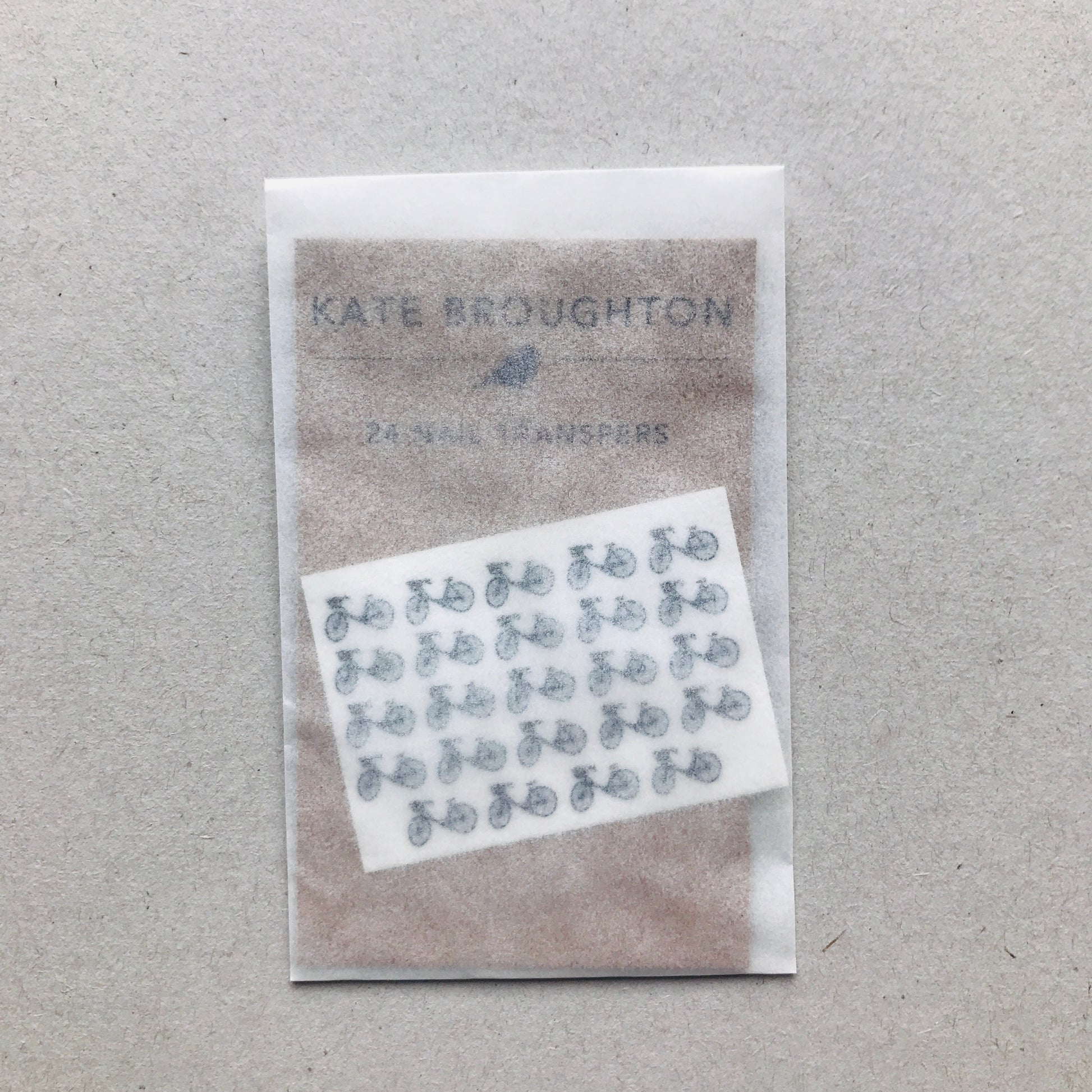 I have made these nail transfers from my original bicycle drawing, there are 24 to cut out from the sheet, and they look great on bare nails or over neutral varnish.